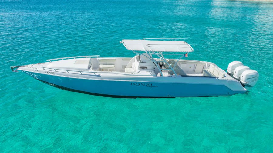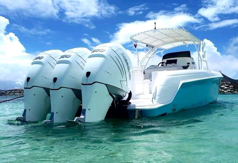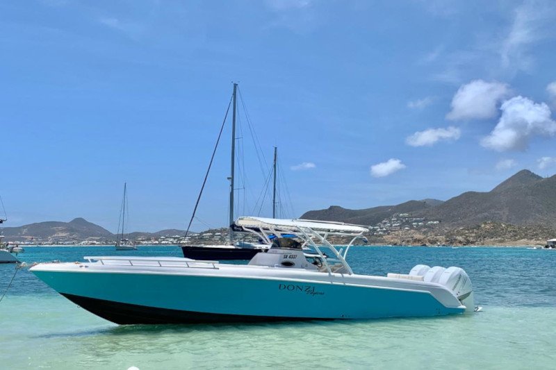 Book a private high speed boat transfer between St Martin and St Barts with All About Boat Charterds Up to 12 passengers..