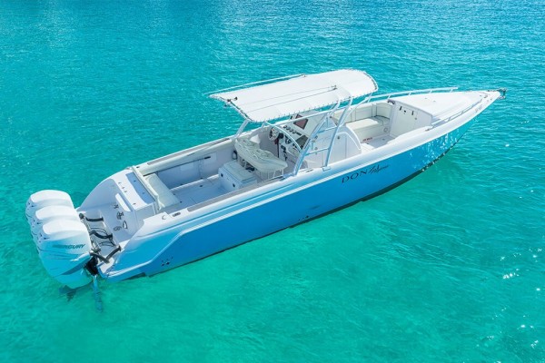 Come aboard this Fountain 51 Powerboat, sit on the bench located on the back of the boat or settle in on the L shaped cushion on the bow. There is ample seating to ensure everyone is comfortable while cruising to your favorite destination. The hard top provides some shade from the sun. Connect to the Bluetooth and create your own vibe for your transfer.