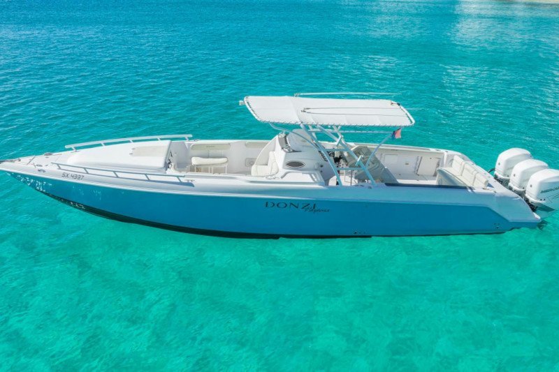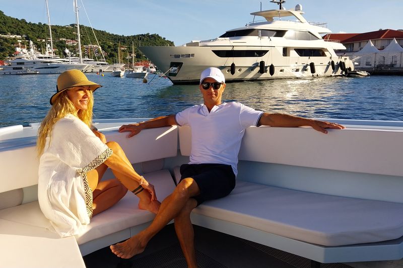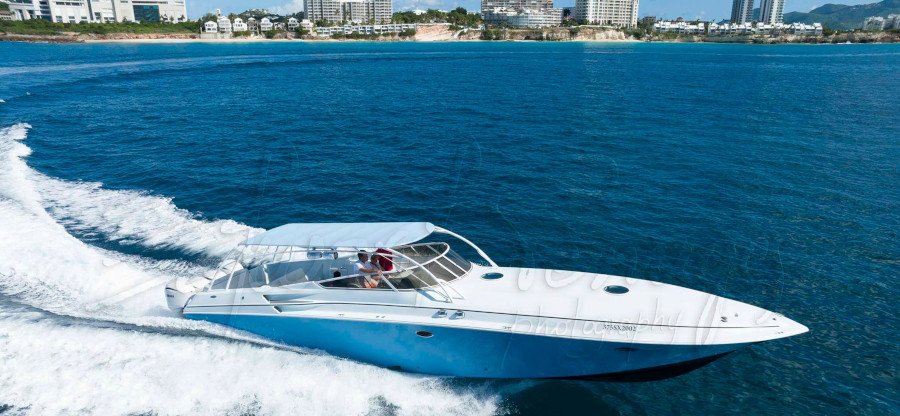 Book a private high speed boat transfer between St Martin and St Barts with All About Boat Charterds Up to 12 passengers..